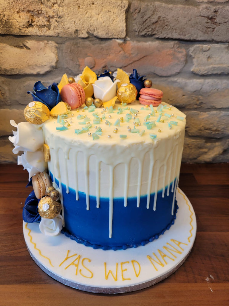 Cakes should be kept refrigerated and once cut should be stored in an airtight container, Please keep away from heat at all times.